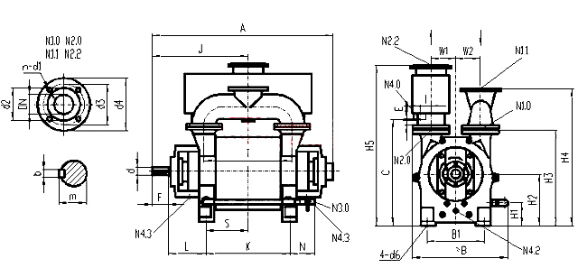 N2.2分离器法兰 N3.0工作液接口 N4.0分离器排液口