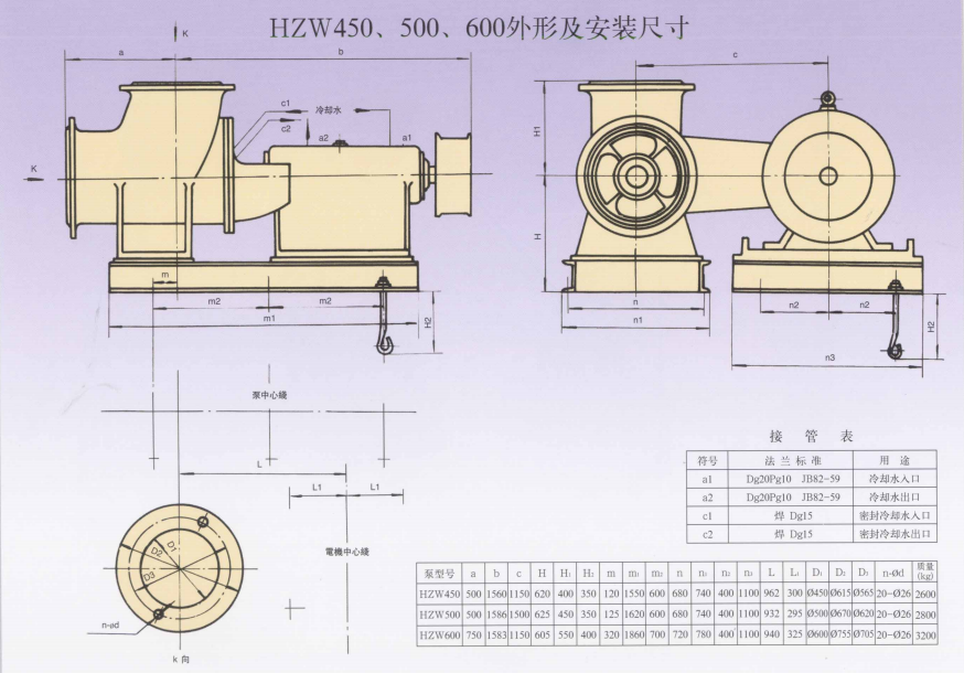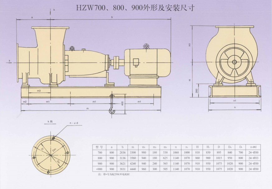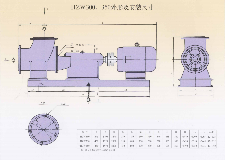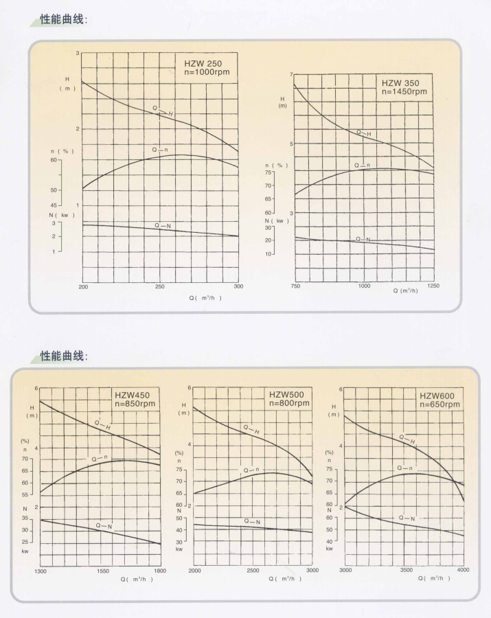 HZW系列化工轴流泵,是我厂自行研制开发的新产品,按口径分:250、300、350、450、500、600、700、800、900共9个型号18个规格产品。其中,HZW250和HZW450、500、600获得国家机械委员会科学技术进步成果奖,HZW700、800、900获得辽宁省政府新产品“金鹰奖”。该系列泵产品扩行GB/T1300B-91标准。