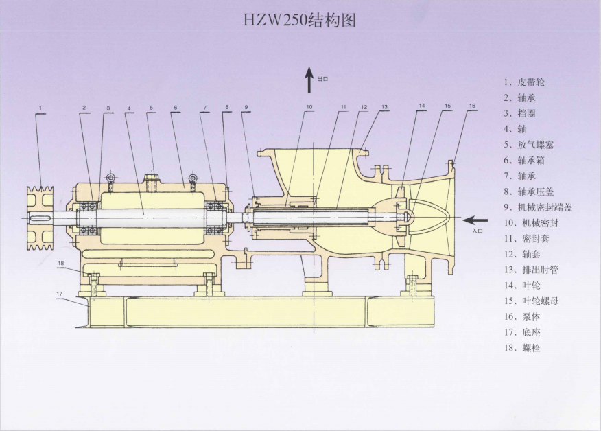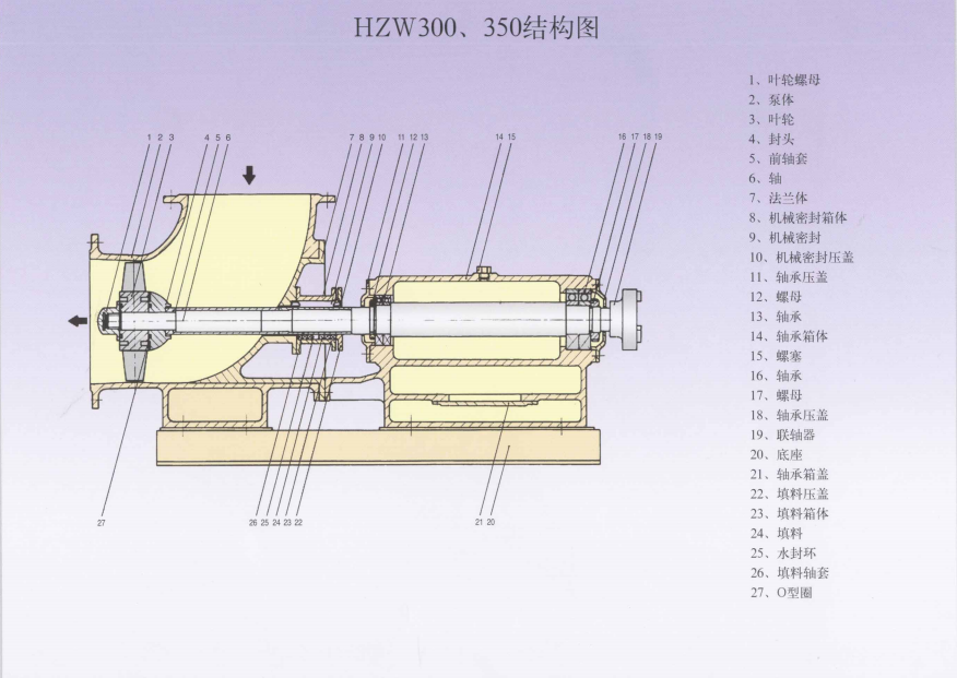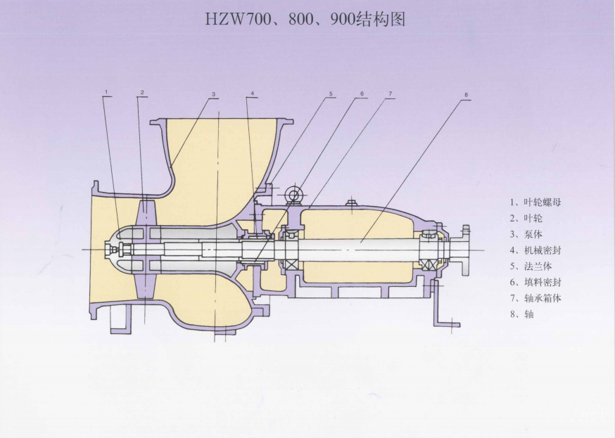 HZW系列是卧式轴流泵,采用悬臂式支撑型式,单级单吸轴流式叶轮,电机采用直联或皮带传动。采用后开门的结构,使得在检修或更换密封时,只要抽出转动部分即可,而不需要拆卸管路,因此具有维修方便的特点。密封型式可采用双端面机械密封或填料密封。泵体采用弯管式或蜗壳式结构,泵进出口口径相同。轴承箱体带有水冷腔,用以通冷却水冷却轴承。对于悬挂式结构或弹性基础式的轴流泵为特殊设计,欢迎来电垂询。