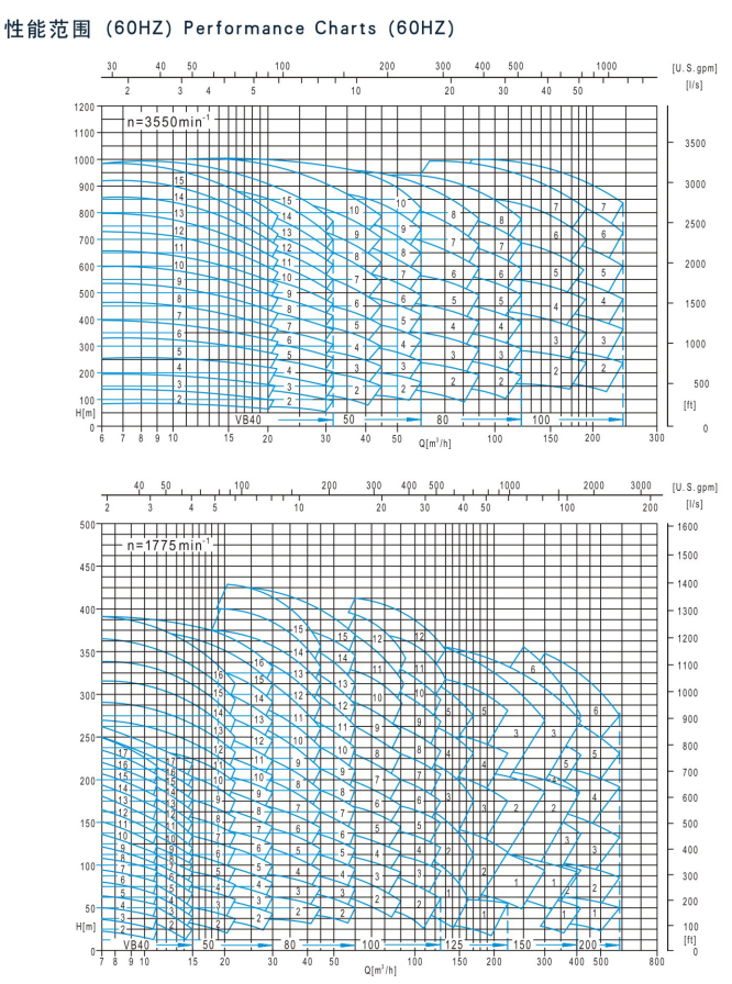 ■水力设计水力模型分为几组,高效节能。首级为吸入式叶轮,适应低汽蚀余量工况。