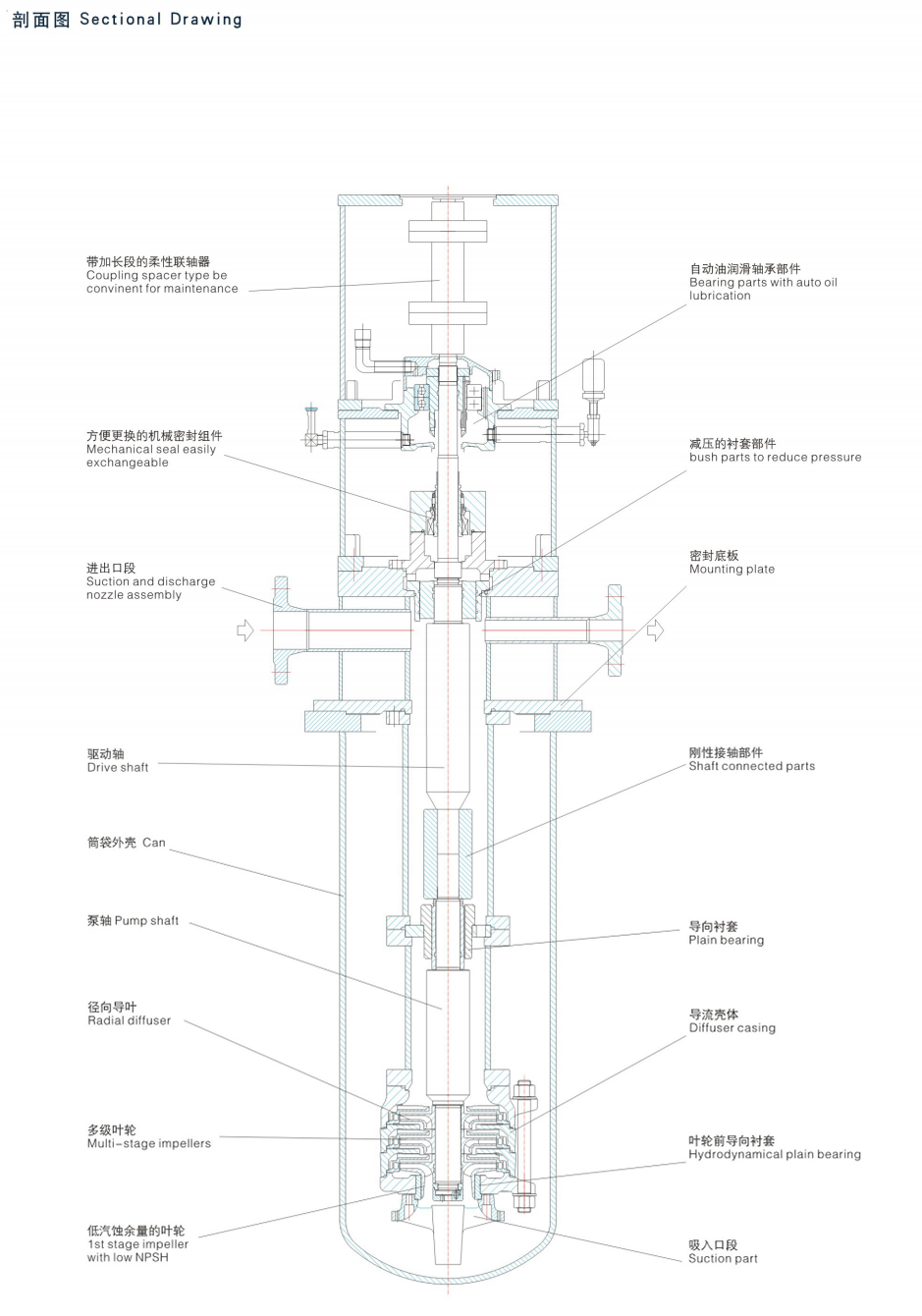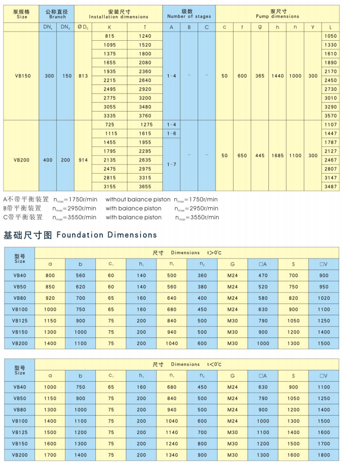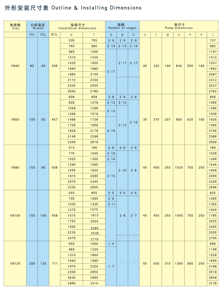 VB系列泵为单吸,多级,径向剖分,导叶立式筒袋泵。专为较低汽蚀余量而设计。对于卧式泵而言,低汽蚀余量的液体输送是很困难的,必须采用立式筒袋泵。
